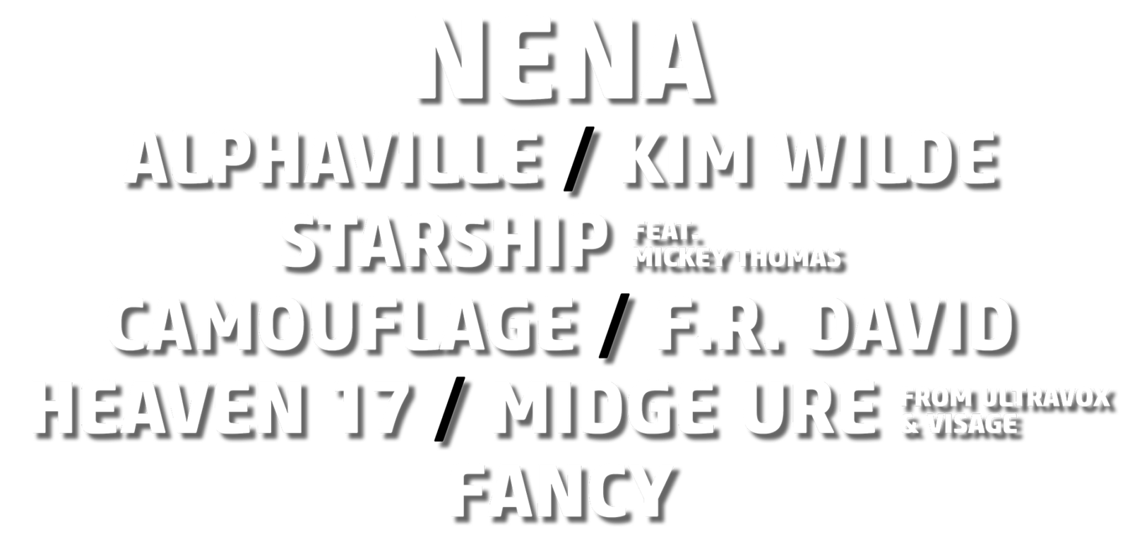 Am Samstag, den 25. Juli 2026, verwandelt sich die VELTINS-Arena in eine Zeitmaschine! Mit internationalen Megastars wie Nena, Kim Wilde, Alphaville, Starship, Camouflage und vielen Weiteren feiert Gelsenkirchen die größte 80er-Party mitten im Ruhrgebiet.